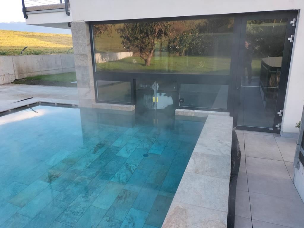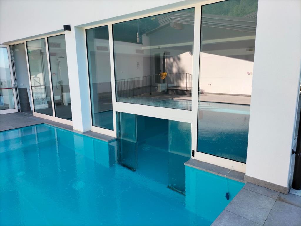 Informazioni tecniche: La centralina sarà posizionata remota alla piscina in una zona asciutta per garantire la massima sicurezza. Invece la parte meccanica sarà posizionata sopra la porta. Le ante saranno in cristallo temperato per garantire il miglior design.